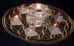 der „Blume des Lebens“ im sogenannten „Pyramidion“-Kraftplatz-Set.